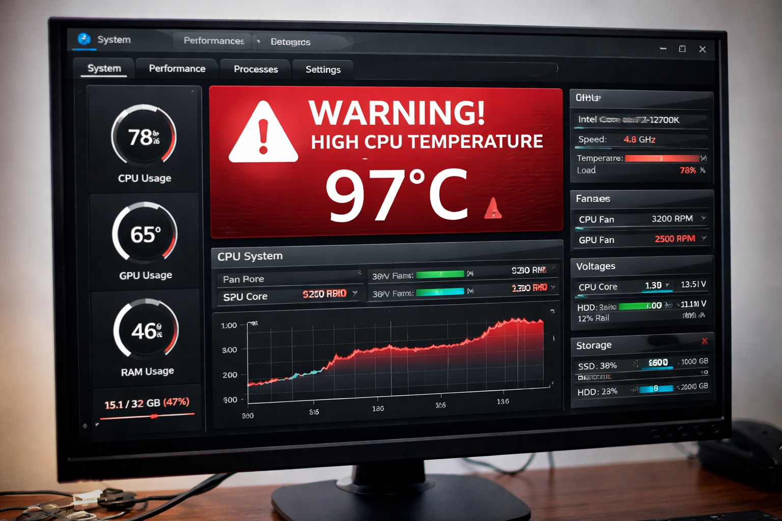 Se CPU ou GPU passam de 90°C, o sistema pode desligar para proteger os componentes.
