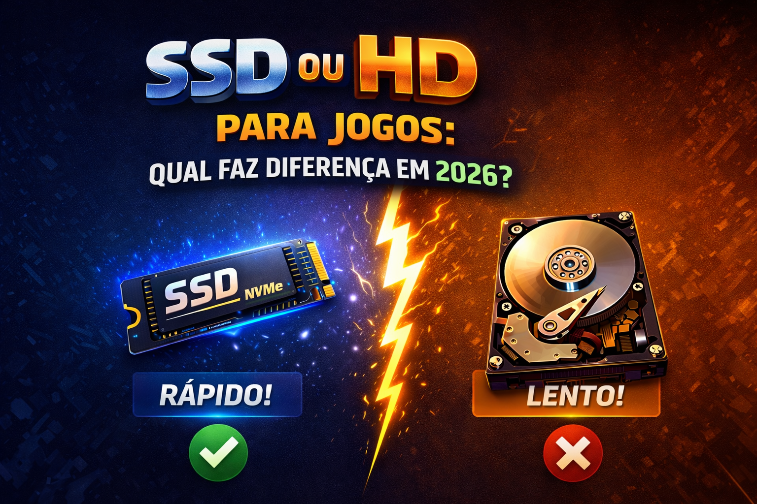Em 2026, a maior diferença entre SSD e HD não está nos FPS, mas na experiência de jogo. Menos espera, menos travamento e mais fluidez no dia a dia.